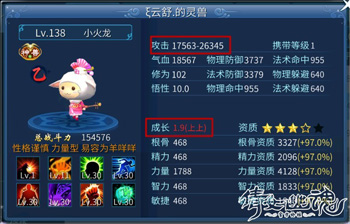 灵兽的成长也分为几个档次,最高是接近满成长的评分,一般成长高的灵兽攻击、防御等等属性战斗力也是更高的。