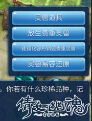当然易容后也是可以还原之前的样子,只要在金陵NPC柳琪琳处, 选择灵兽易容还原就可以,灵兽还原需要提交500元宝。